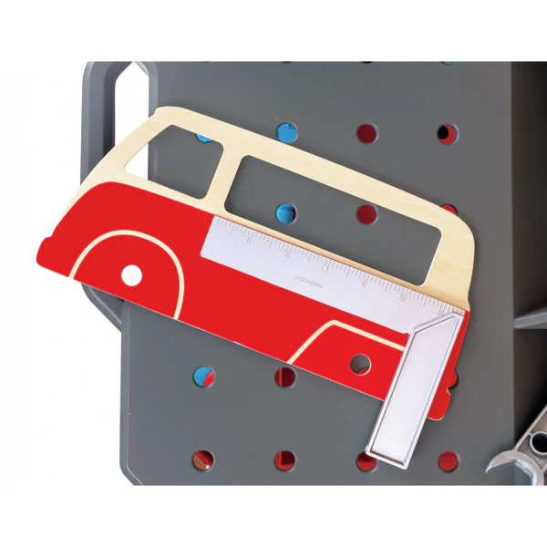 Este juguete fomenta el desarrollo de las habilidades motoras gruesas al estar de pie, mover y manejar las piezas más grandes de la mesa de trabajo. El uso de las distintas herramientas y la manipulación de pequeñas piezas de automóvil ayudan a desarrollar las habilidades motoras finas.